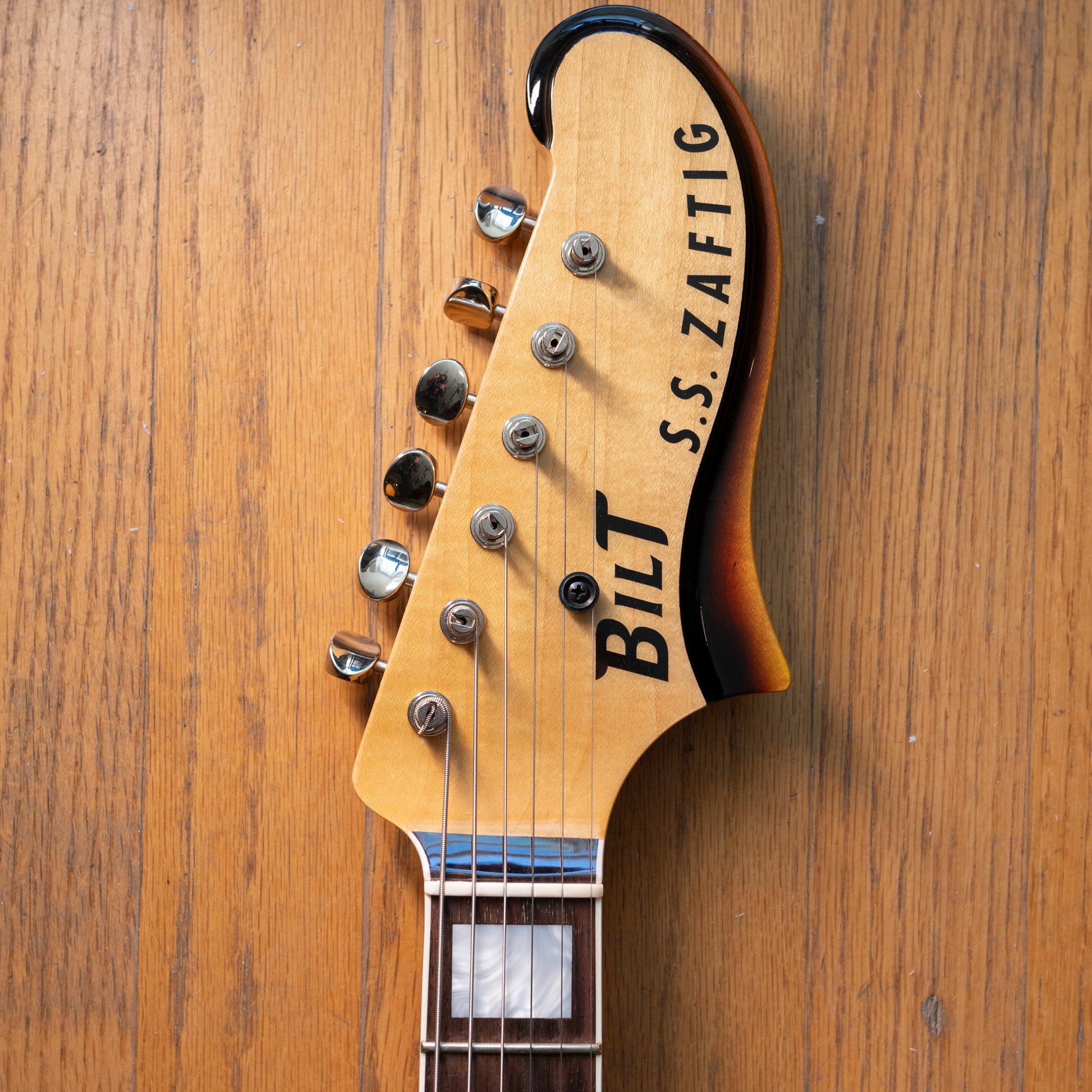 Hot dang, these Bilts sure are nice! And this Zaftig is no exception! This is a very early production model S.S. Zaftig, and it's a ripper! It shows signs of playwear across the body and neck, and plays great across the fretboard. Hardshell case included!