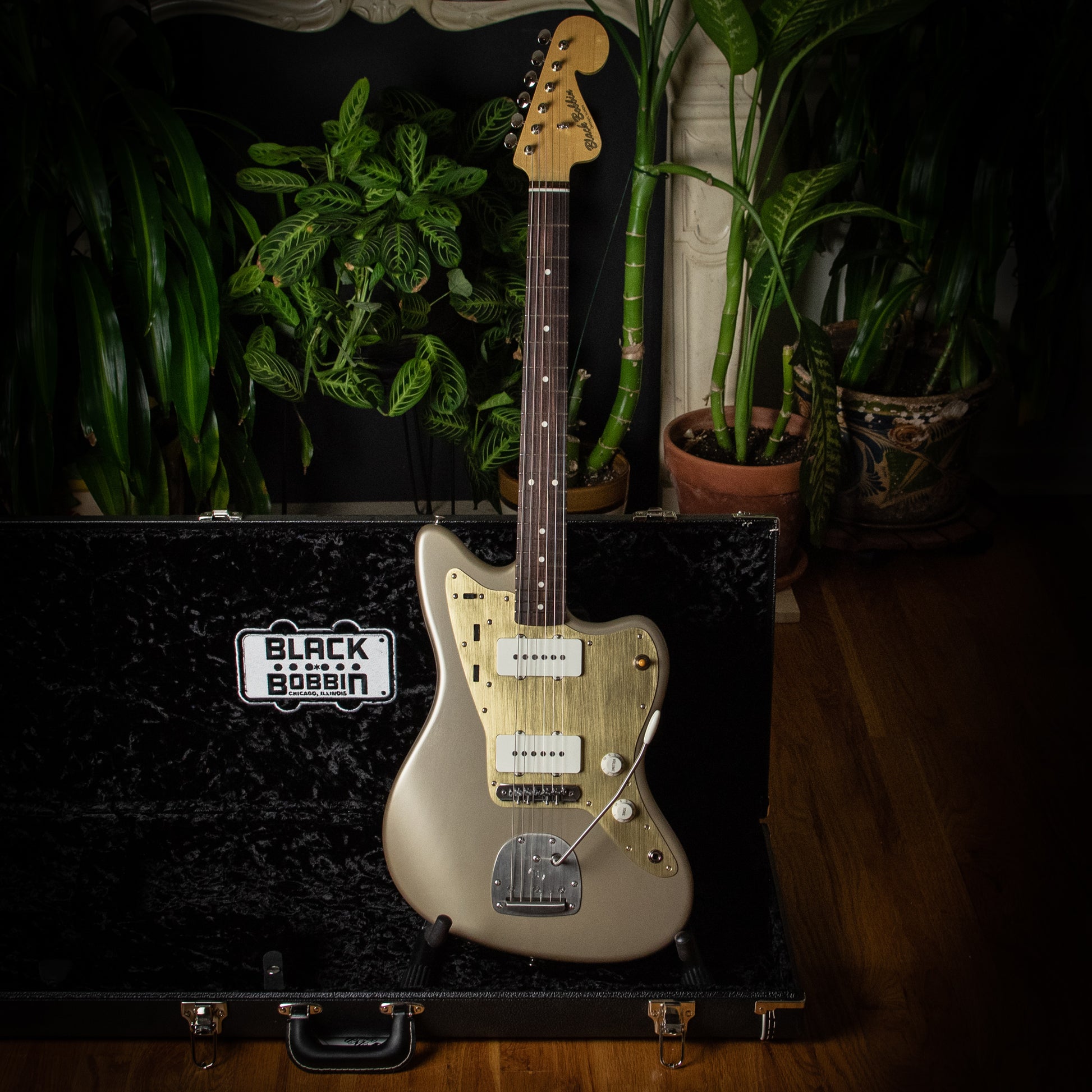 Inspired by a few very rare gold Jazzmasters created in '58, we've made this incredible Black Bobbin® Custom JM. There is an amazing photo of Leo Fender with Luther Perkins where he is holding a '58 Gold Jazzmaster, so we had to do it! Don't miss this rare opportunity to grab a BBJM today!