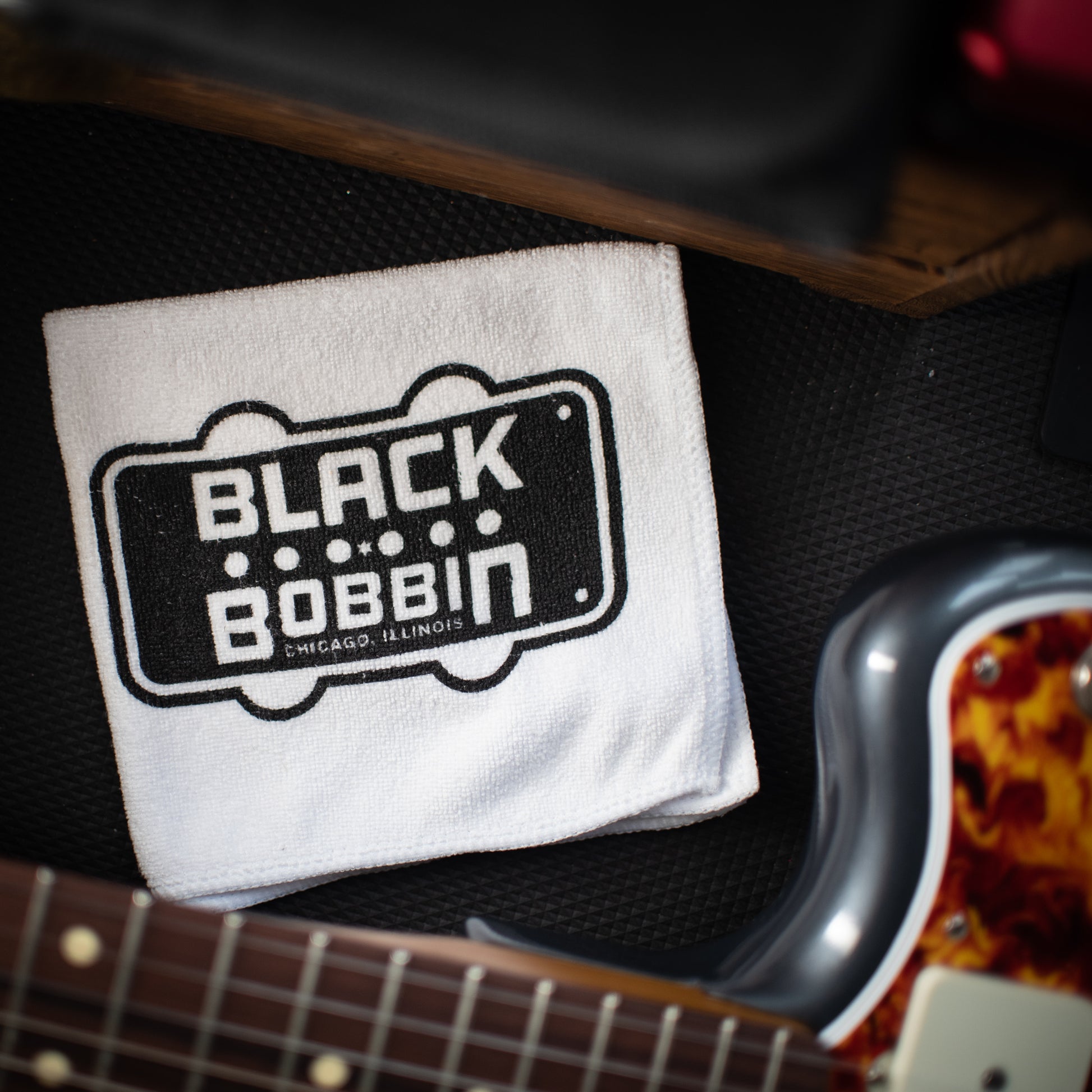 Keep your instrument clean in style with our Black Bobbin polish cloth! The logo side of the cloth provides a nice sturdy grip, while the rest of the cloth can bee used to clean the body, and, and pickguard.