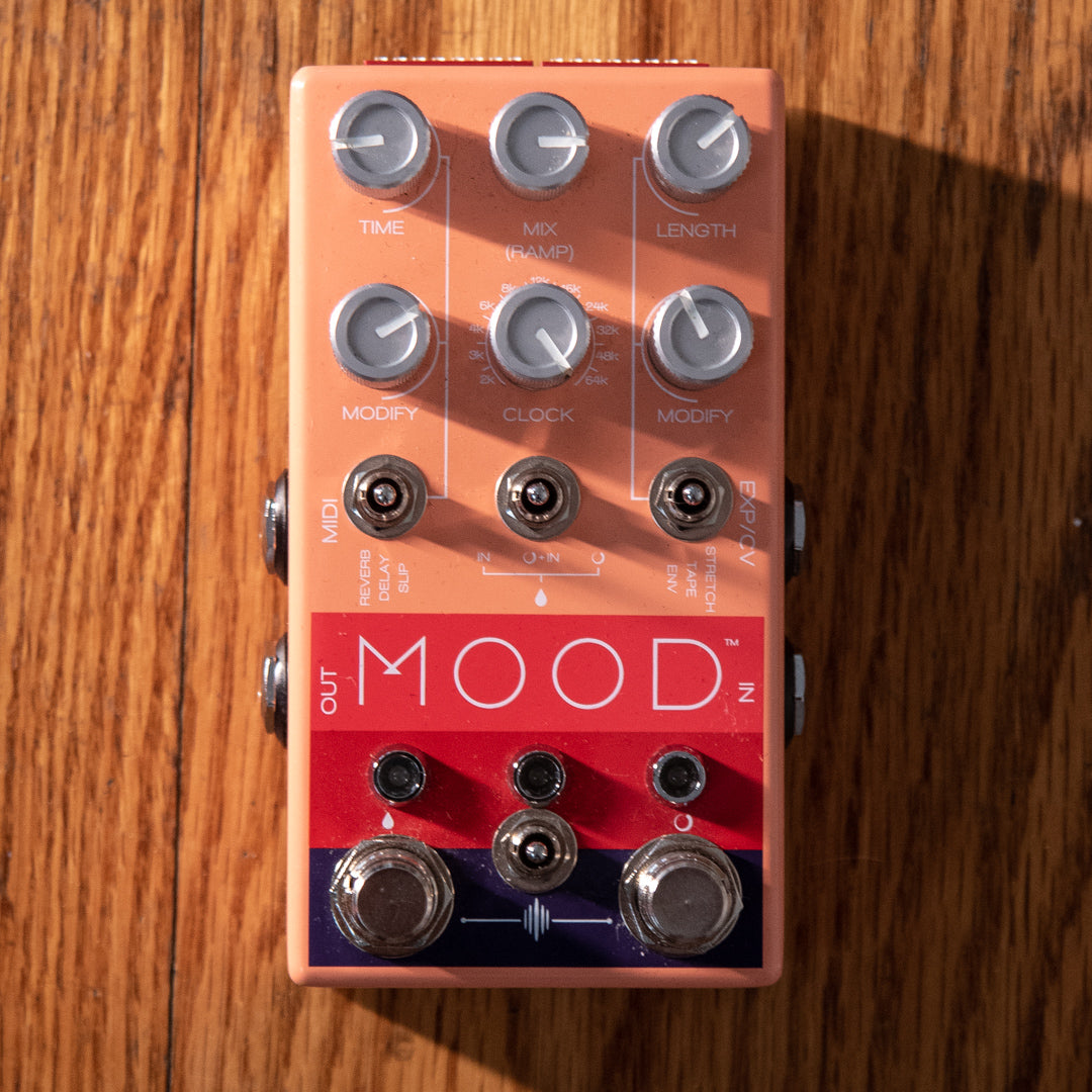 MOOD is a two channel granular micro-looper / delay. Designed to be playful and immediate, it is a study of interaction. MOOD is internally collaborative, allowing audio to freely pass back and forth between its two sides, evolving and transforming over time. Drolo FX is behind the loop channel, a collection of always-listening micro-loopers, and old blood noise endeavors offer us the wet channel, a suite of live spatial effects.