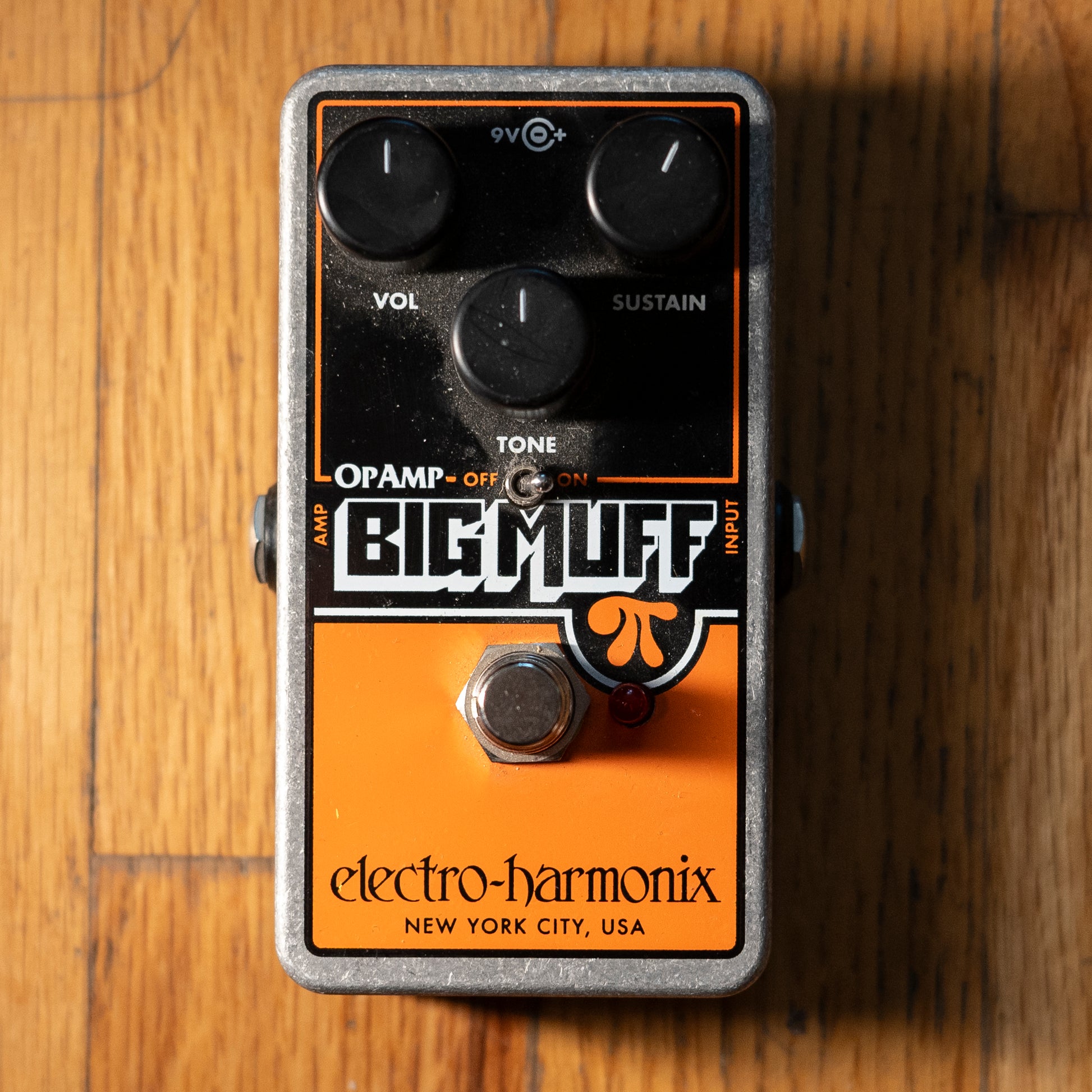 With original late-70s Op-Amp Big Muffs selling for exorbitant prices, Mike Matthews decided to take the power to the people and reissue the classic pedal at a price that players could afford! The circuitry of the new EHX Op-Amp Big Muff Pi —sometimes also referred to as the IC or V4 Big Muff— has been faithfully re-created while several practical enhancements have been added including a compact, die-cast chassis and true bypass switching.