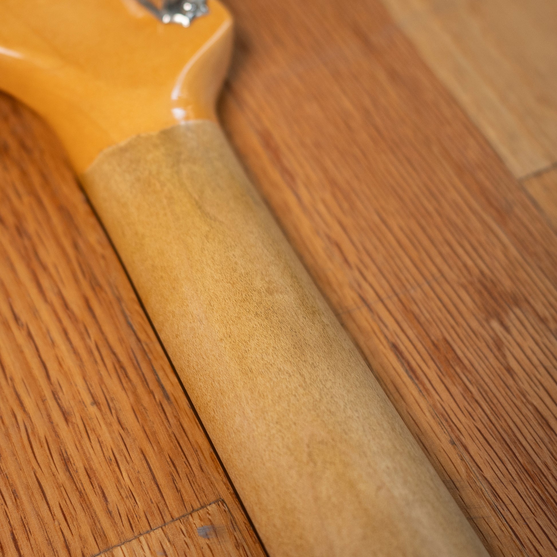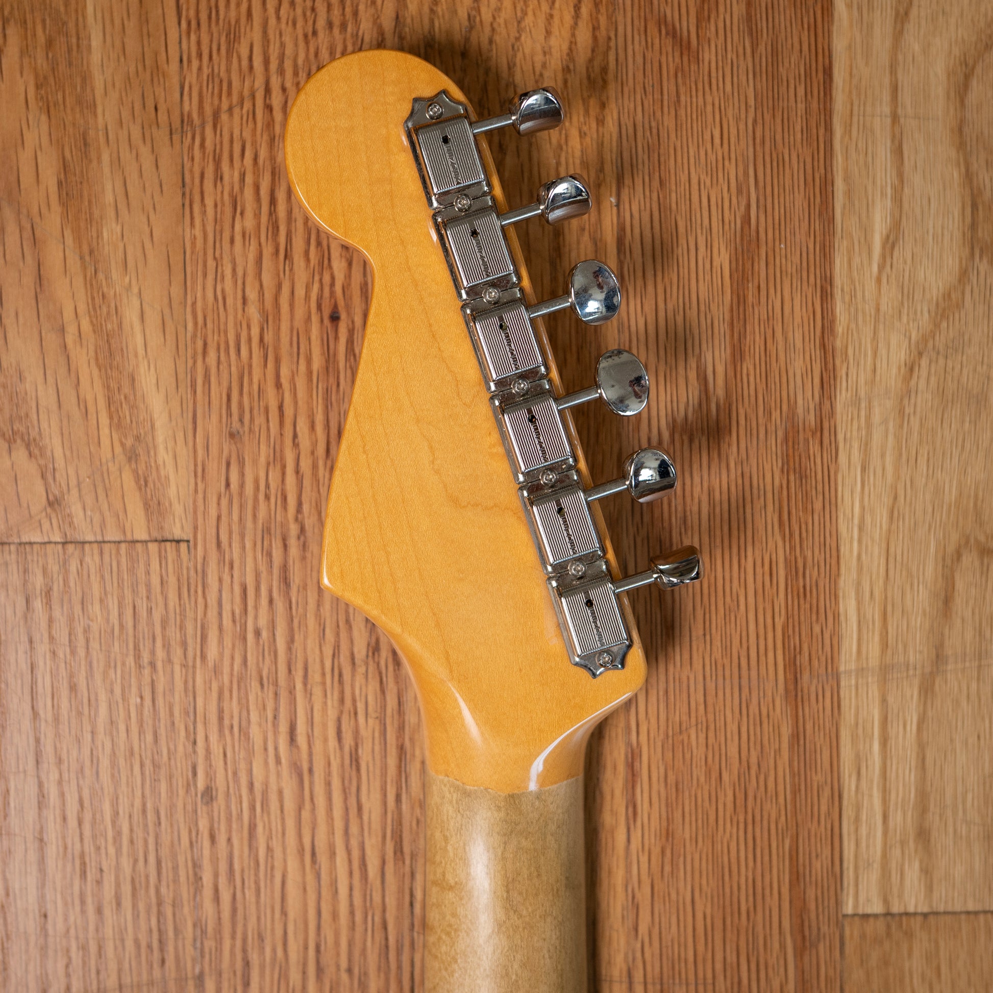 This American Original Stratocaster has been heavily modified—and it's seriously cool. Outfitted with a pair of Seymour Duncan humbuckers, this guitar delivers punchy, dynamic tone far beyond the standard Strat. It features a striking Dalmatian-style pickguard and a stripped-back neck for smooth, fast playability. The frets are in great shape and play evenly across the board. Overall, it's in excellent condition and includes the original case.