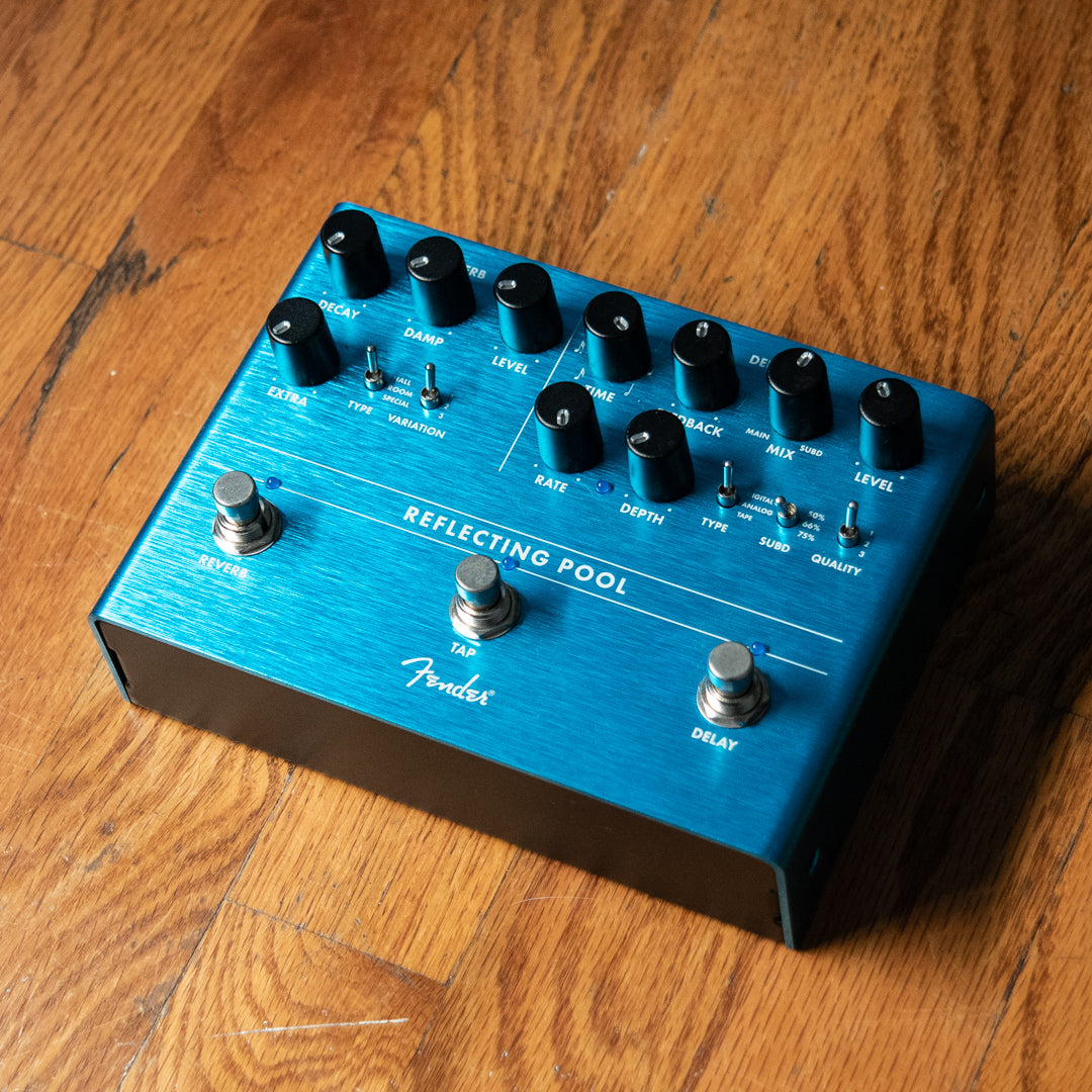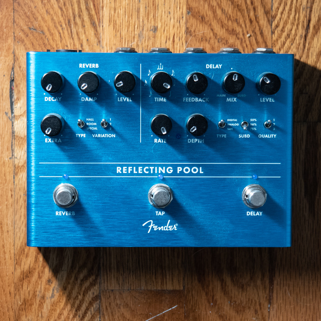 Designed by our in-house team of experts, the Reflecting Pool® Delay/Reverb is an all-original Fender circuit. The chassis is crafted from lightweight, durable anodized aluminum, and the Amp Jewel LED gives your pedalboard the classic Fender look. The switchable LED-backlit knobs show your control settings on a dark stage at a glance.