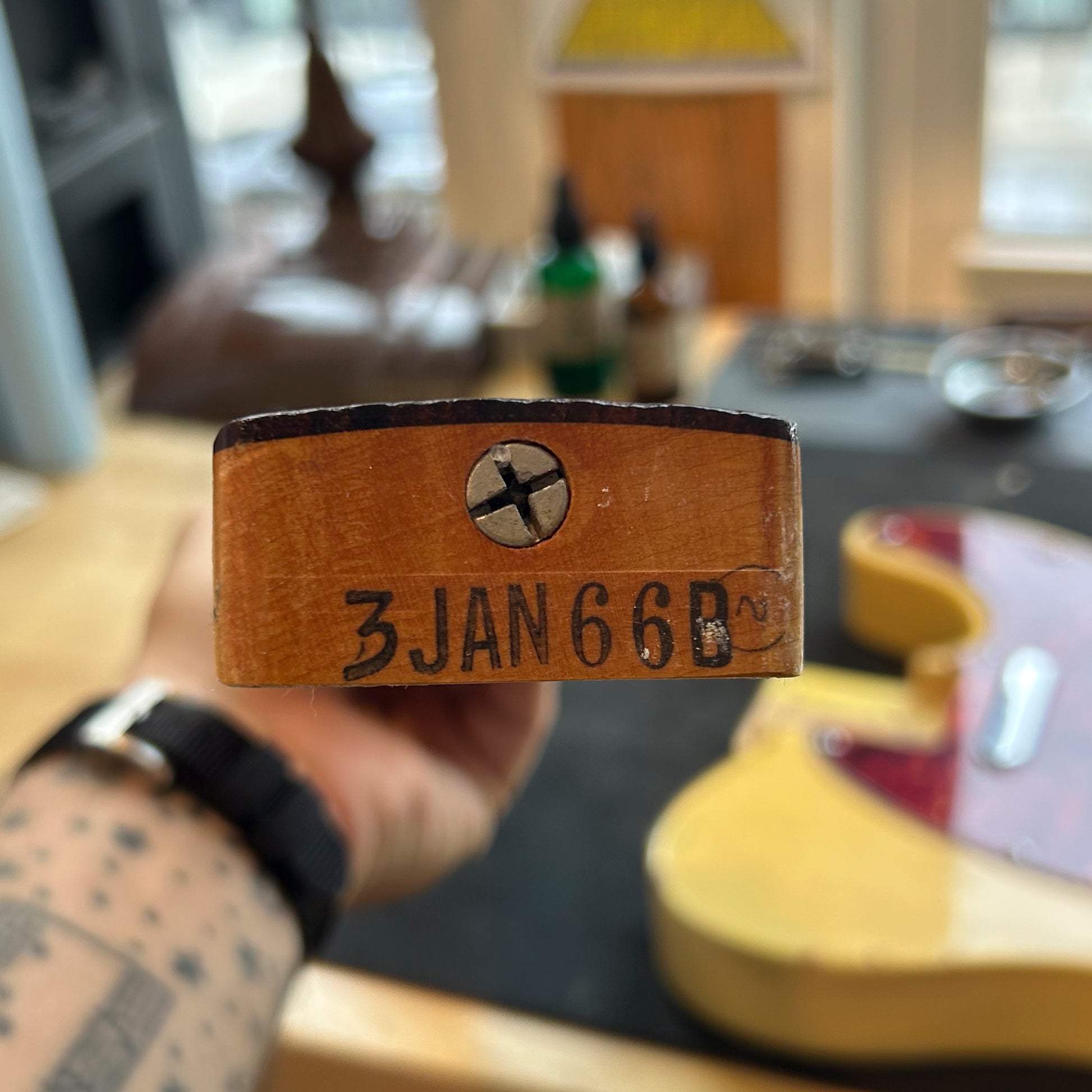 It’s something special to have a ’60s Telecaster in the shop with this much vintage vibe. The original blonde finish shows extensive checking and play wear—exactly what you'd hope to see in a well-loved guitar from this era. It looks fantastic.