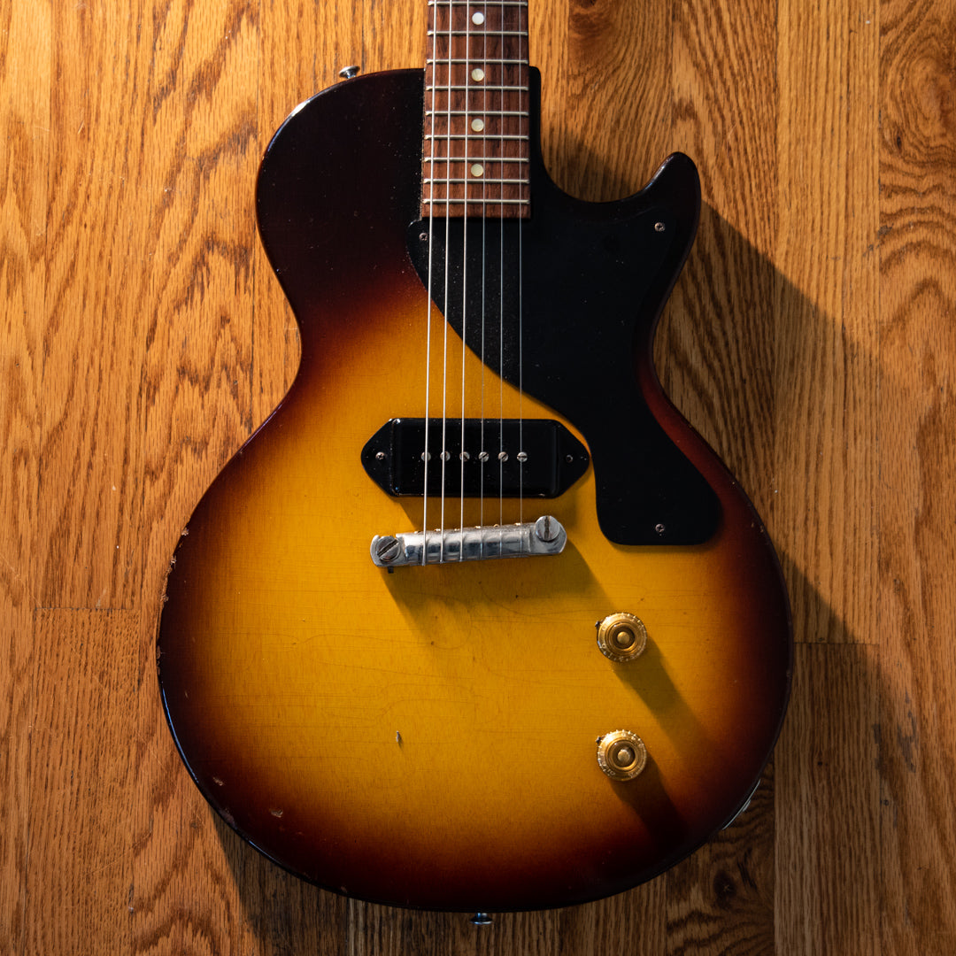 I have played a lot of Les Paul Juniors in my day, and this one is one of the absolute finest. It has a great sound and resonance unplugged that really translates when amplified. The finish has an excellent honey hue in the middle, and the edges are a wonderful trans red that reveals the mahogany grain underneath. The back and sides of the guitar do show some signs of play wear, and the top has some weather checking. This is a very fine instrument that represents the golden era of Gibson guitars!