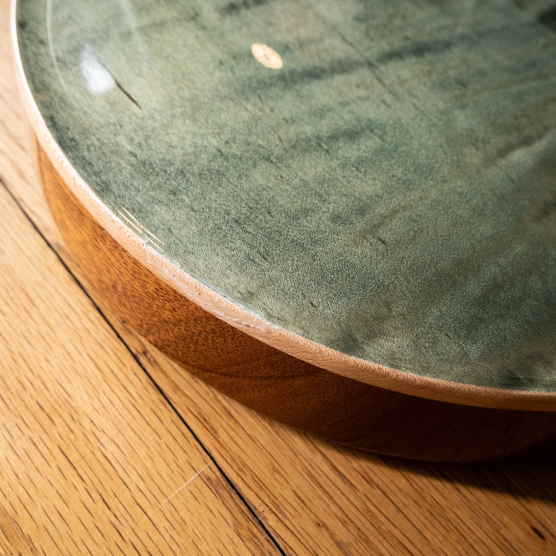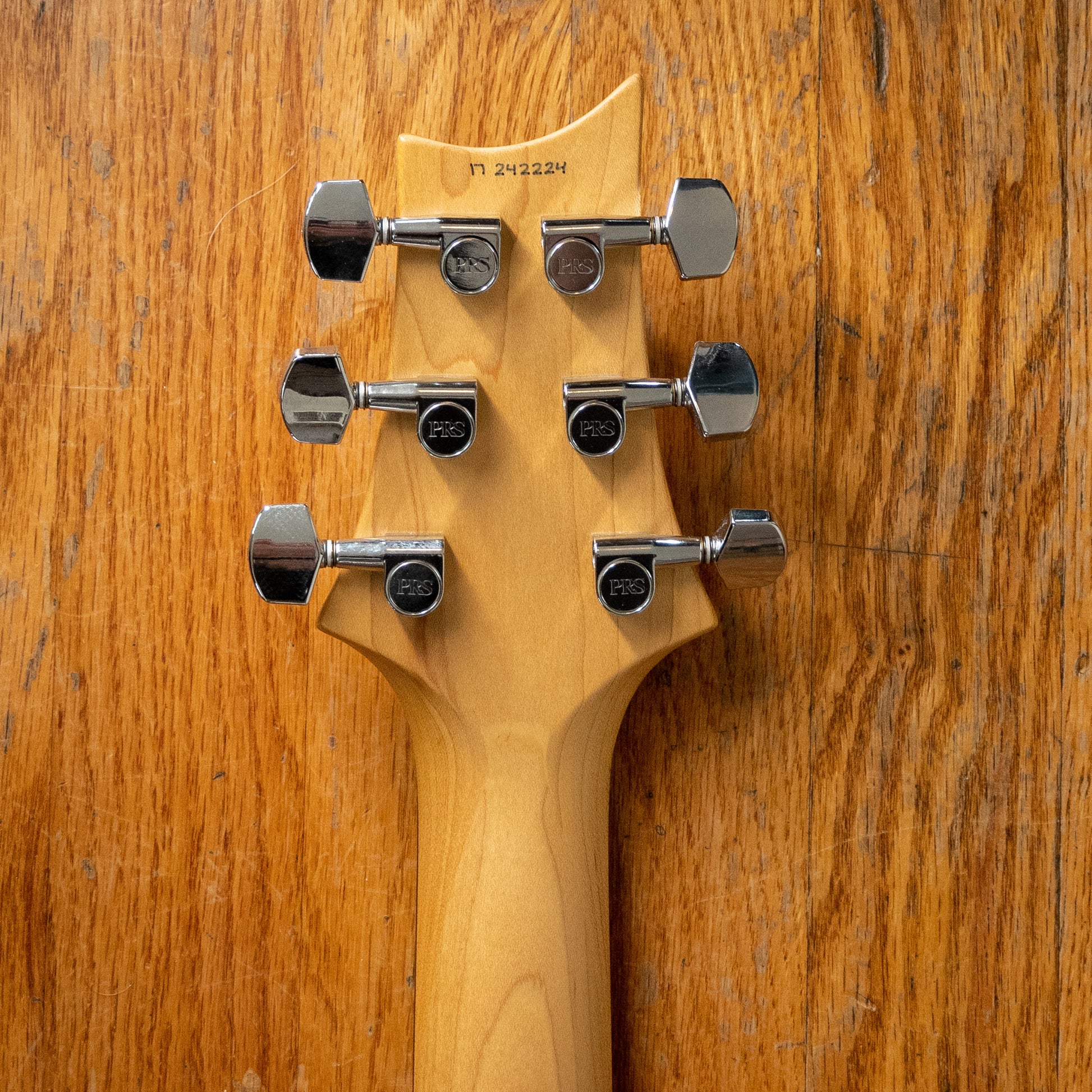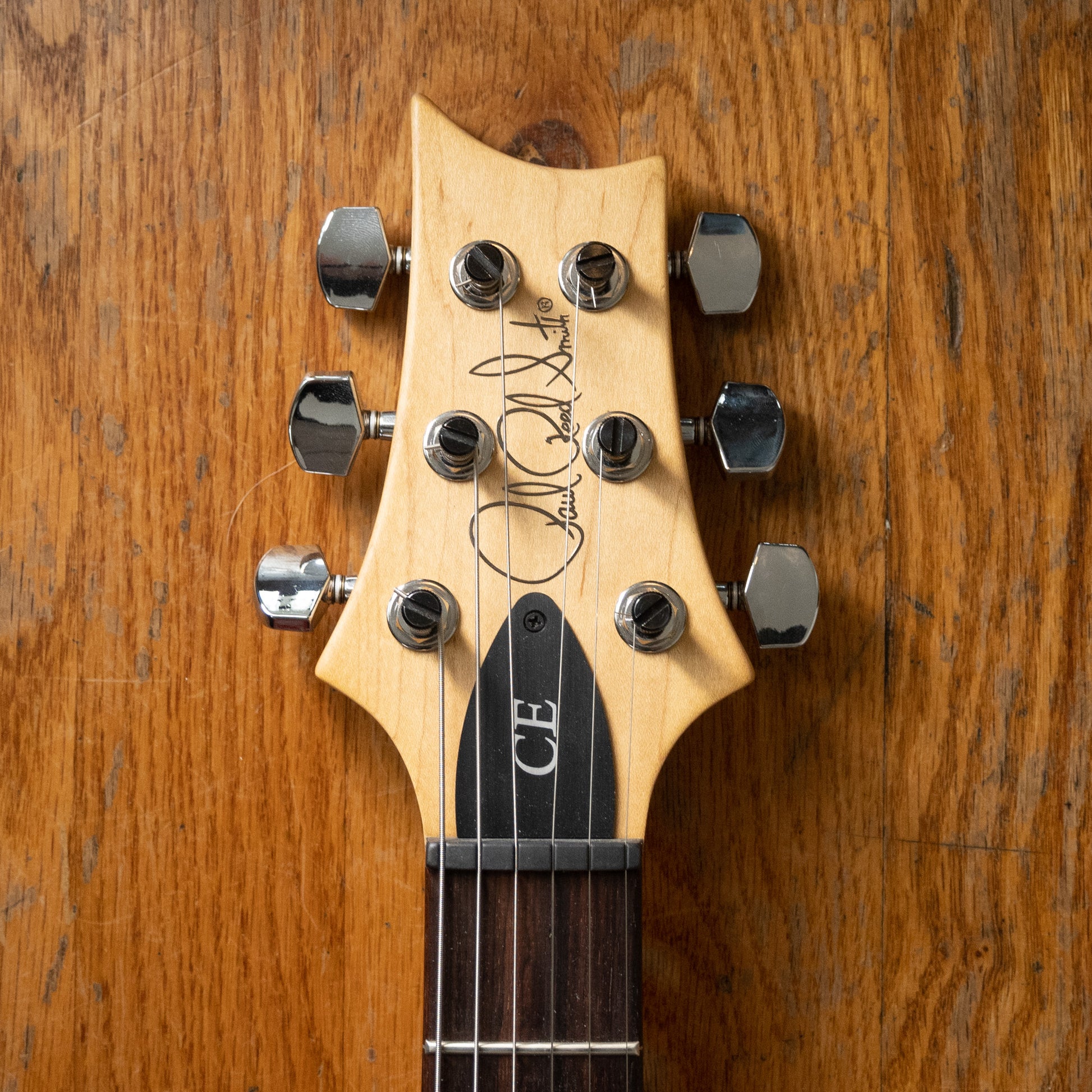 Check out this used PRS CE 24, which is in excellent condition! It shows little play wear across the body, and frets evenly across the board. There is a small chip on bottom of the body on the binding near the strap pin, an area of lacquer separation on the bass side, and some small blems on the neck. Includes a gig bag.