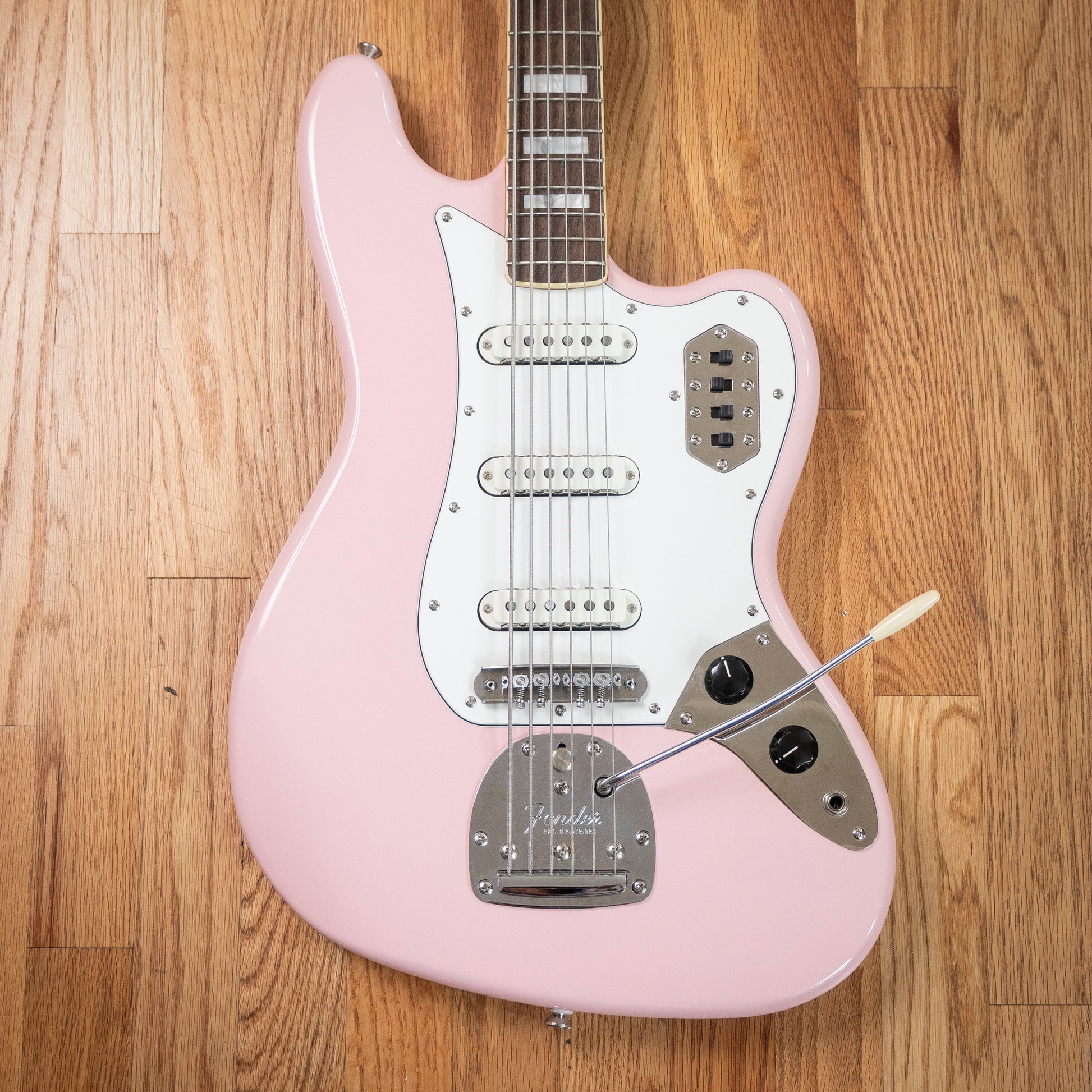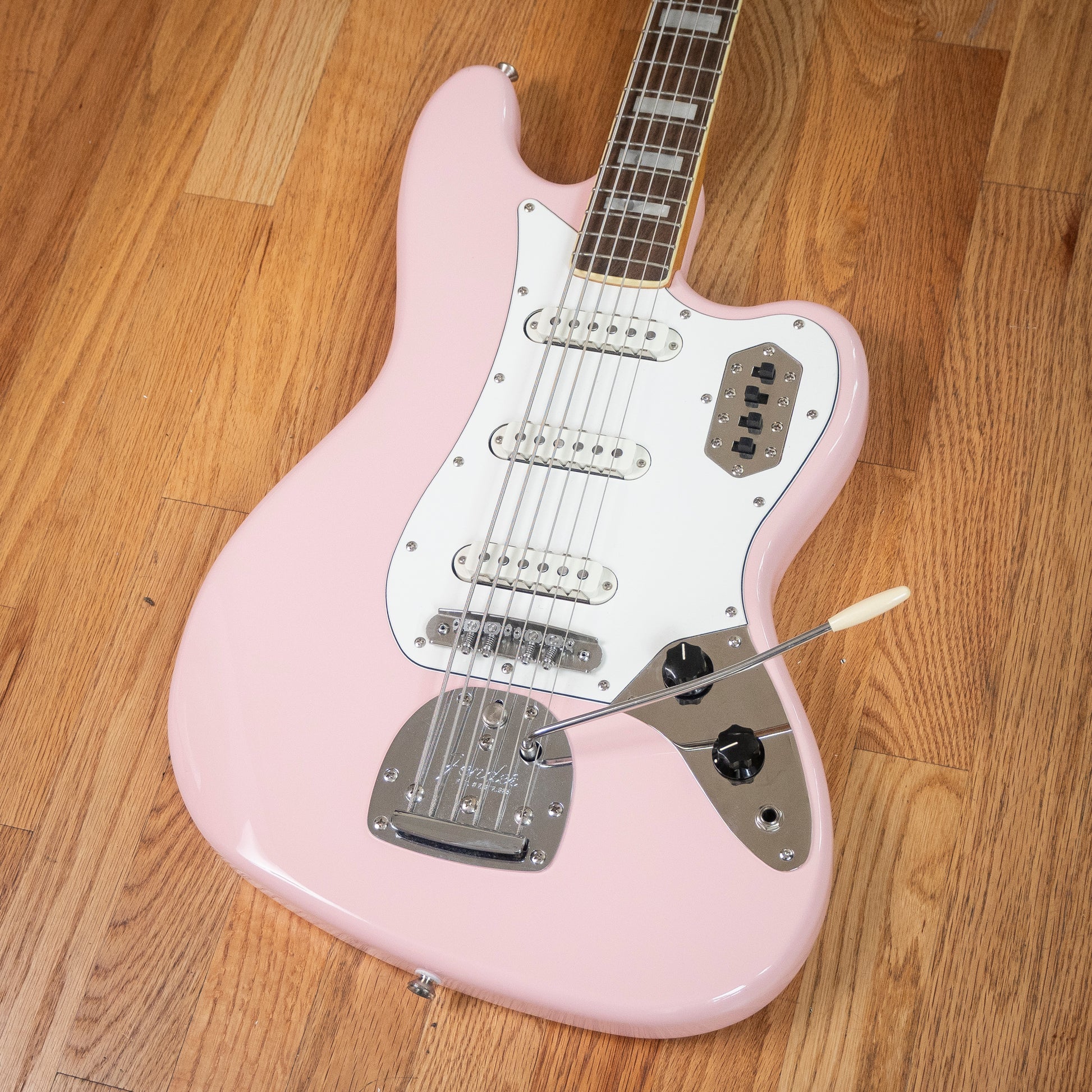 This 2021 Squier Classic Vibe Bass VI in Shell Pink is an absolute standout — visually stunning and sonically massive. Based on the legendary Fender Bass VI, this extended-range baritone bass/guitar hybrid covers everything from deep bass grooves to surfy guitar leads, and even ambient textures.