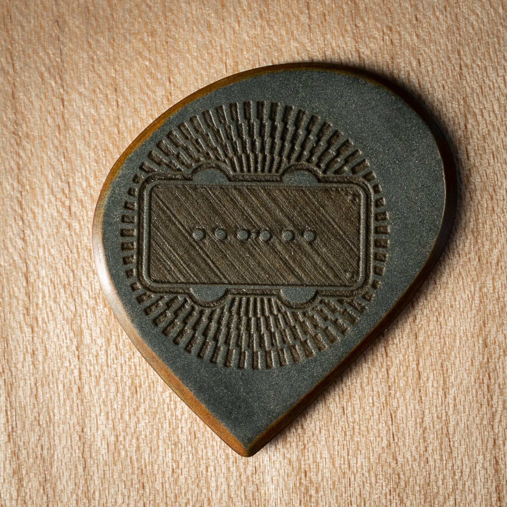 For our Exclusive Black Bobbin Pick, we turned to Twig Case in Minnesota to collaborate. We set out with the goal to replace the current favorite pick in our pocket, and immediately solved that with the Leaf Pick. Created from Richlite, the Leaf Pick is durable, sonically pleasing, and sustainable! The contoured shape allows for a very comfortable grip, giving you the precision of a Jazz III with the confidence and control of a much larger pick. Each pick is hand shaped and slightly unique in color.