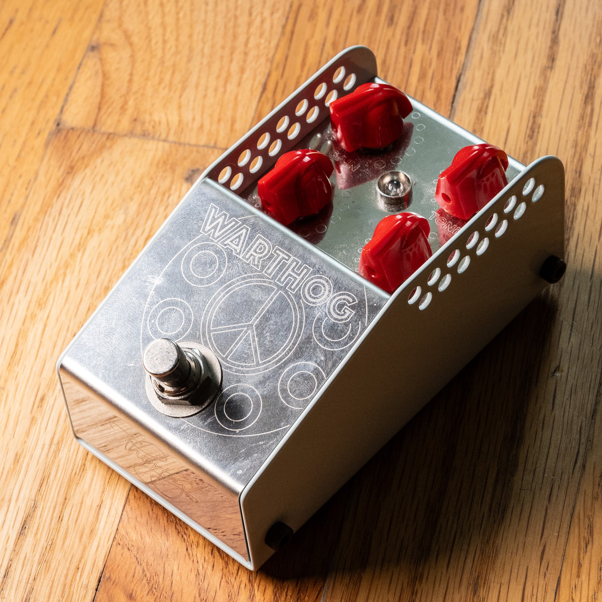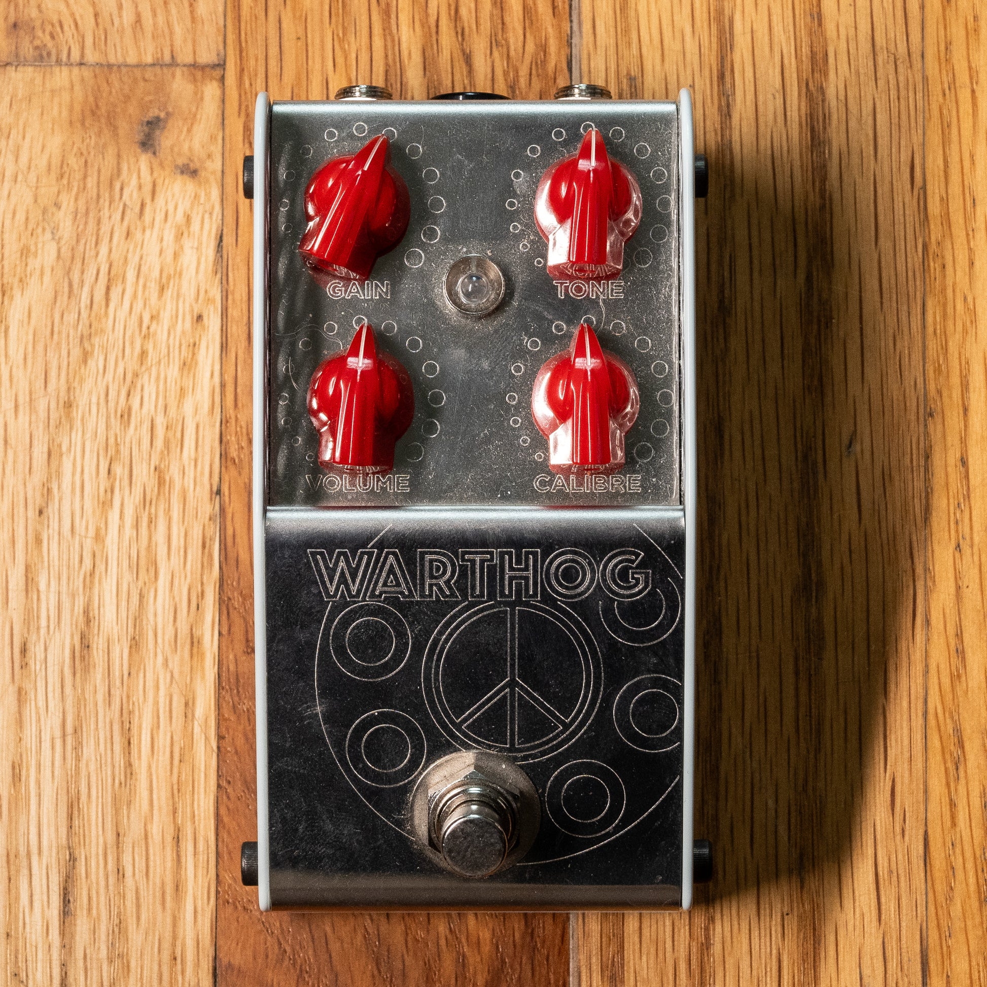 The WARTHOG started off being designed to be the distortion to beat all others; however it ended up being so much more. Through minute tailoring of the circuit, the WARTHOG delivers the biggest range of tones of any overdrive/distortion pedal on the market. With an ability to go from crystal clean boost through to distortion the WARTHOG has sonic characteristics that match the military prowess of its namesake. Its tonality is firmly in the American camp with sparkling cleans similar to the best amplifiers in that genre, With the calibre and gain controls cranked you get a crushing distortion with fuzzy overtones at the very extremes of travel. All settings are extremely addictive, with a 3 dimensional and complex sound that makes your playing jump from the fretboard.